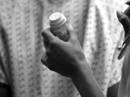 The tall clock tower and looming white pillars of the Lawrence County, Pennsylvania Courthouse stands tall against the cloudy sky as another day in Drug Court begins.