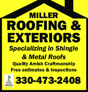 MILLER ROOFING & EXTERIORS Specializing in Shingle & Metal Roofs Quality Amish Craftmanship Free estimates & Inspections 330-473-2408