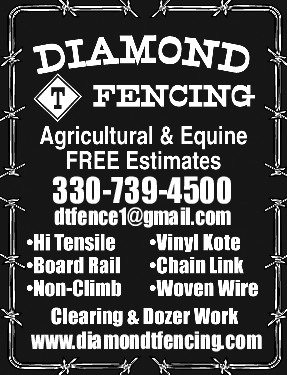 Diamond T Fencing Agricultural & Equine Free estimates hi tensile board rail non-climb vinyl kote chain link woven wire now avilable clearing & dozer work www.diamondtfencing.com 330-739-4500 dtfence1@gmail.com