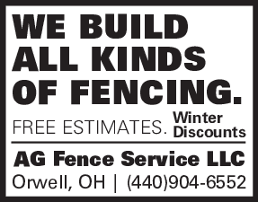 WE BUILD ALL KINDS OF FENCING. FREE ESTIMATES. AG Fence Service LLC Orwell, OH | (440)904-6552 Winter Discounts