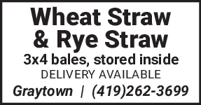 Wheat Straw & Rye Straw 3×4 bales, stored inside DELIVERY AVAILABLE Graytown | (419)262-3699