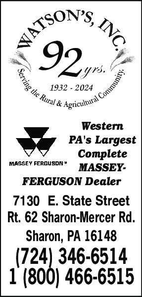 7130 E. State Street Rt. 62 Sharon-Mercer Rd. Sharon, PA 16148 (724) 346-6514 1 (800) 466-6515 Western PA’s Largest Complete MASSEY- FERGUSON Dealer 9 2 1932 – 2013 – 2024