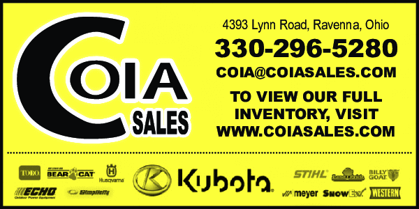 4393 Lynn Road, Ravenna, Ohio 330-296-5280 COIA@COIASALES.COM TO VIEW OUR FULL INVENTORY, VISIT WWW.COIASALES.COM
