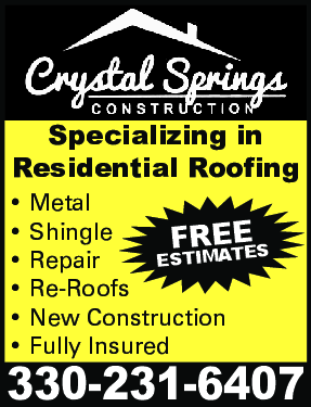 FREE ESTIMATES • Metal • Shingle • Repair • Re-Roofs • New Construction • Fully Insured 330-231-6407 Specializing in Residential Roofing
