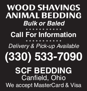 WOOD SHAVINGS ANIMAL BEDDING Bulk or Baled * * * * * * * * * * * Call For Information * * * * * * * * * * * Delivery & Pick-up Available (330) 533-7090 SCF BEDDING Canfi eld, Ohio We accept MasterCard & Visa