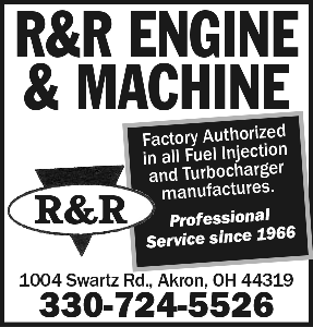 R&R ENGINE & MACHINE 1004 Swartz Rd., Akron, OH 44319 330-724-5526 Factory Authorized in all Fuel Injection and Turbocharger manufactures. Professional Service since 1966 R&R