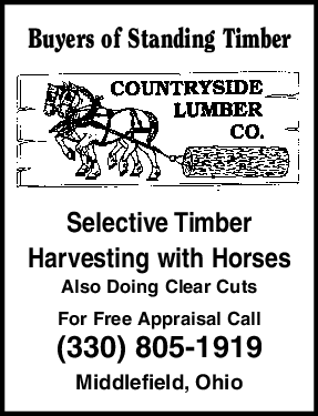 Buyers of Standing Timber Selective Timber Harvesting with Horses Also Doing Clear Cuts For Free Appraisal Call (330) 805-1919 Middlefield, Ohio