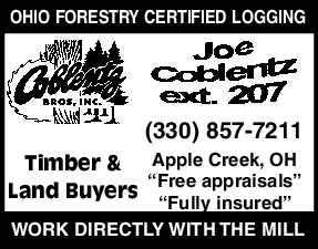 (330) 857-7211 Apple Creek, OH “Free appraisals” “Fully insured” OHIO FORESTRY CERTIFIED LOGGING WORK DIRECTLY WITH THE MILL Timber & Land Buyers (330) 857-7211 Apple Creek, OH “Free appraisals” “Fully insured” OHIO FORESTRY CERTIFIED LOGGING WORK DIRECTLY WITH THE MILL Timber & Land Buyers
