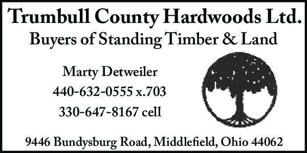 Trumbull County Hardwoods Ltd. Buyers of Standing Timber & Land 9446 Bundysburg Road, Middlefield, Ohio 44062 Marty Detweiler 440-632-0555 x.703 330-647-8167 cell