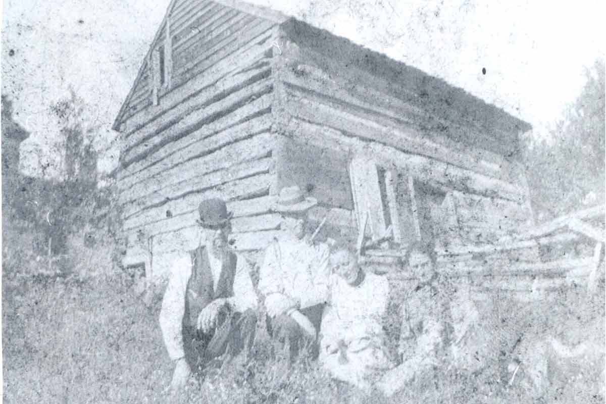 A very poor photograph of the log house my great-grandfather Samuel Andrews Moore grew up in. Unfortunately, I have no idea who the people in the picture are or what year it was taken. (Sam Moore photo)