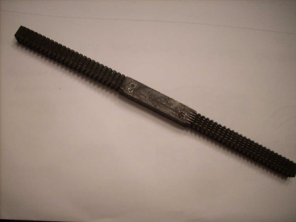 thread file. Used to restore threads on a damaged bolt. The number on the tool represents the number of threads per inch on the bolt to be fixed.