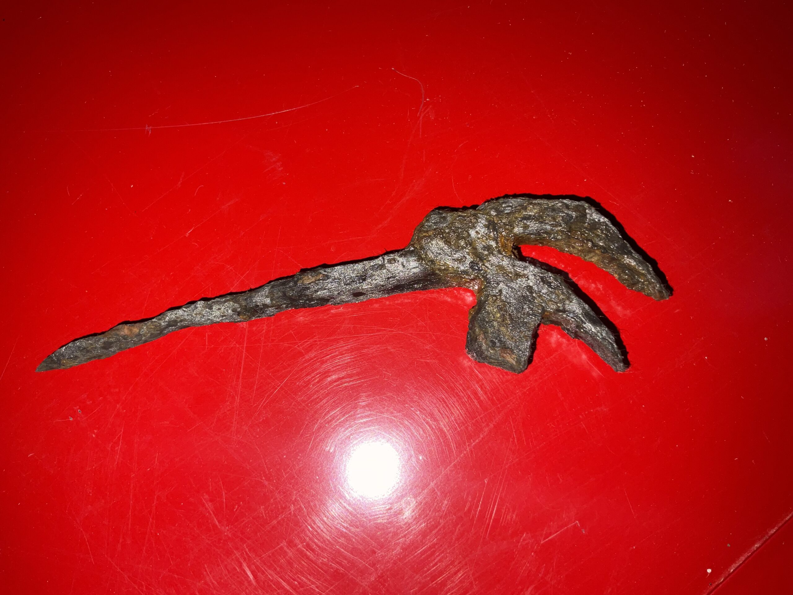 Tim Miller discovered Item No. 1276 while he was metal detecting at an 1820s to 1830s homesite. It is approximately 6 inches long, tapering down into a point, and a 1/2 inch to 3/4 inch wide.