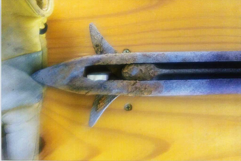 Rick Poole, of Greensburg, Pennsylvania, submitted Item No. 1135. When you pull the lever, the inside ring is in the position of spikes.
