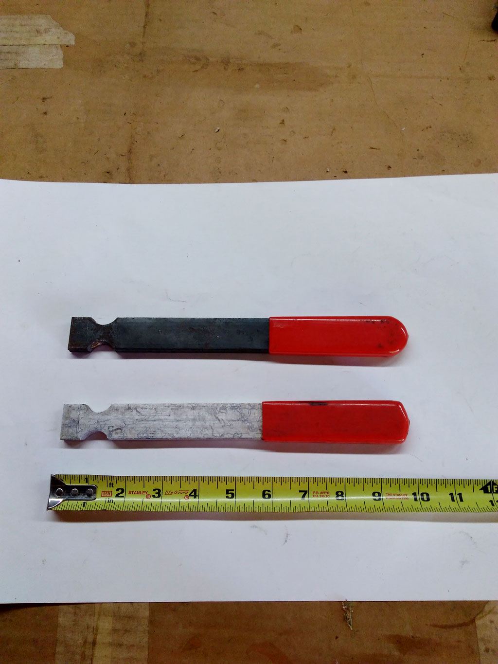 Reid Easton, of Elkin, North Carolina, inherited Item No. 1197 many years ago. The dimensions are 10 by 1 by 3/8 inches. One is steel, and one is aluminum.