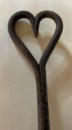 The real masterpiece of the blacksmith’s art, however, was revealed in the hinges that secured the slanted lid of the toolbox that was always attached to the wagon’s side. These hinges were highly detailed and often incorporated such designs as tulips, hearts, birds, flower blossoms and snakes.
