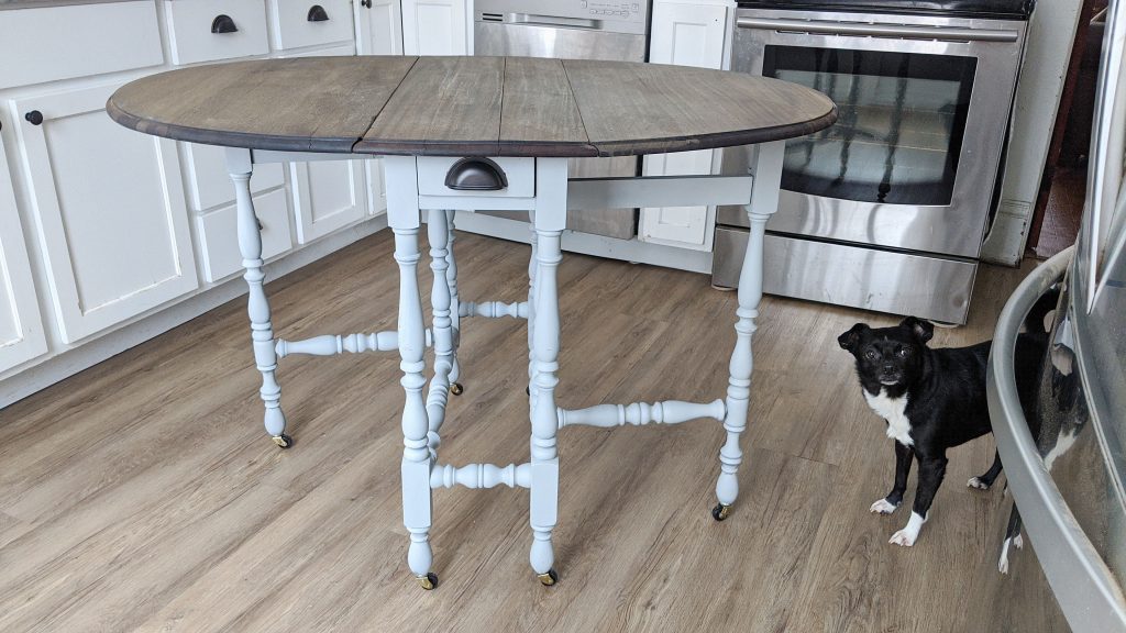 The only thing I am allowed to cut around here is corners. My most recent foray into corner-cutting-near-disaster DIY was my insistence on making over an old gateleg table. My budget was roughly $20 and I wanted to spend an hour to an hour and a half tops. That would include coffee breaks, naturally.