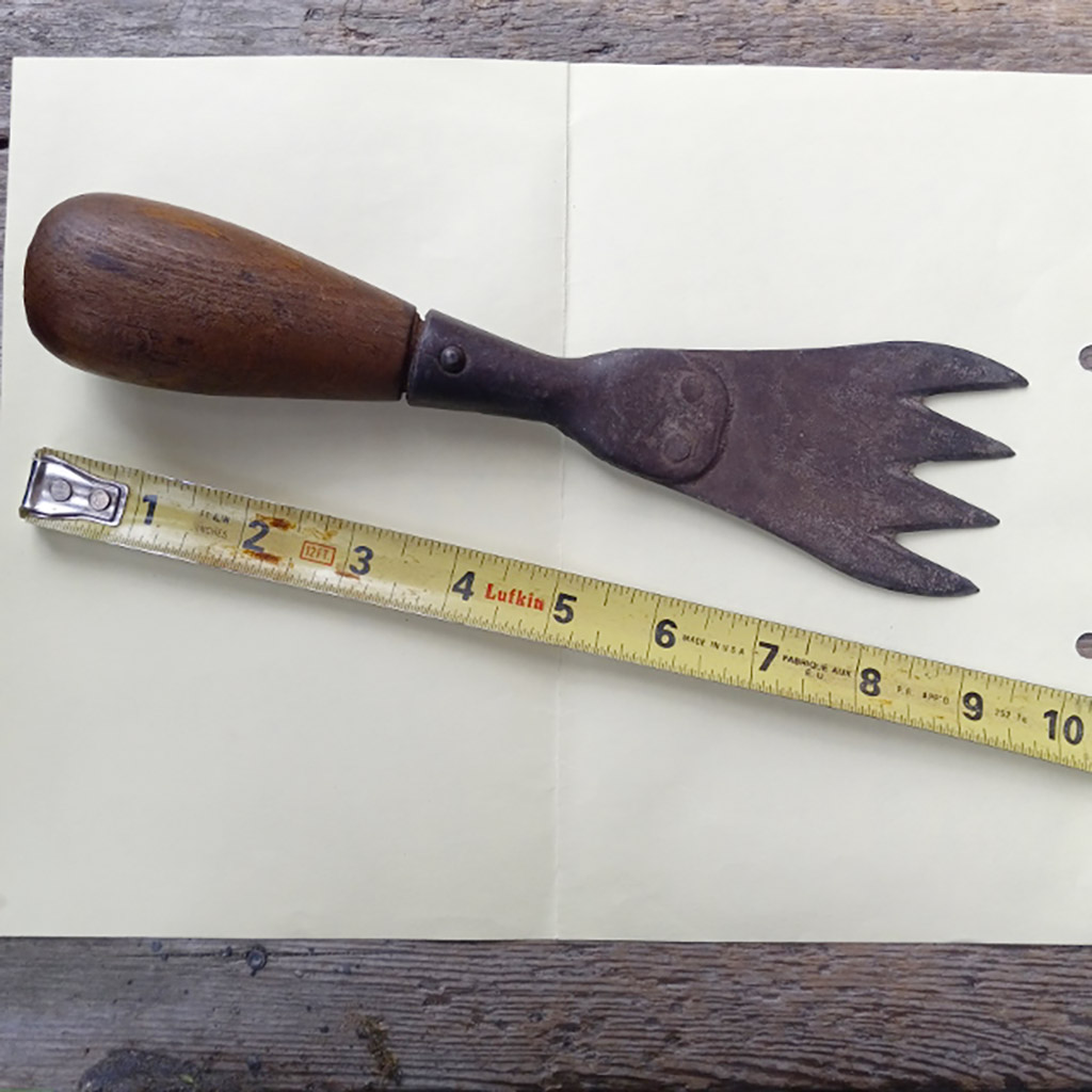 Item No. 1282 is about 9 inches long with a wooden handle and a steel, toothed end.