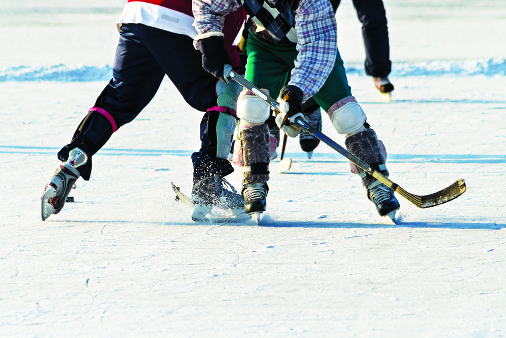 On the farm, a frozen lake usually means a pick-up game of pond hockey. There are no matching jerseys but everyone knows who is on their team.
