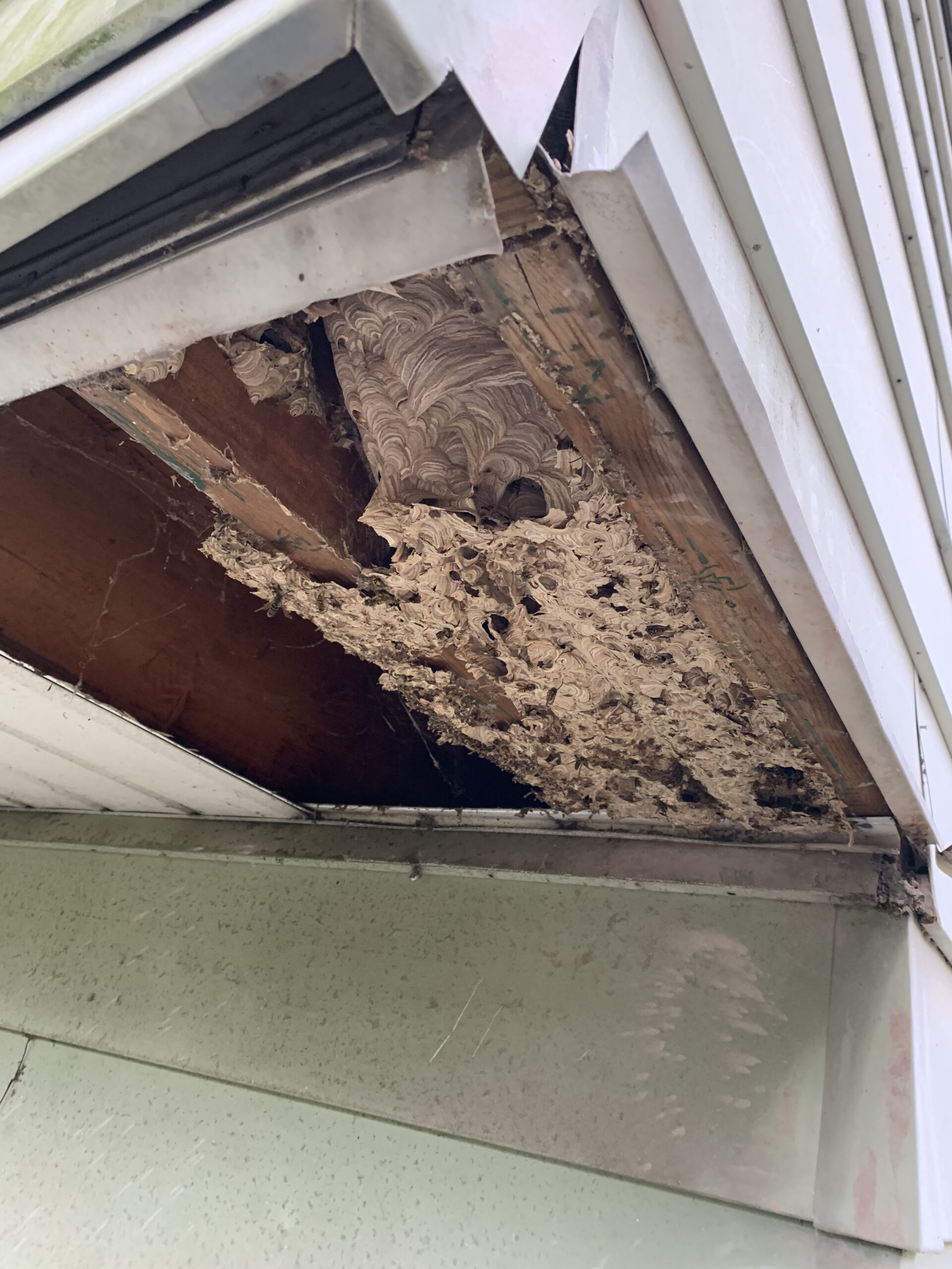 A yellow jacket nest hidden underneath siding (Scott Svab photo)