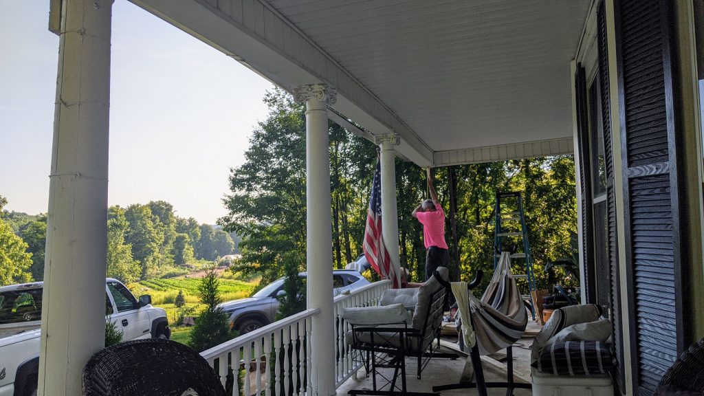 Around me fluttered one very nervous mama bird. I understood her concern. There I was with my giant self, lumbering around her babies. If this bird had spent any time at all around our home, she knows I’m clumsy. I backed away with my hands up to show I meant no harm. Obviously, the porch belongs to the birds now. I’m not a homewrecker.