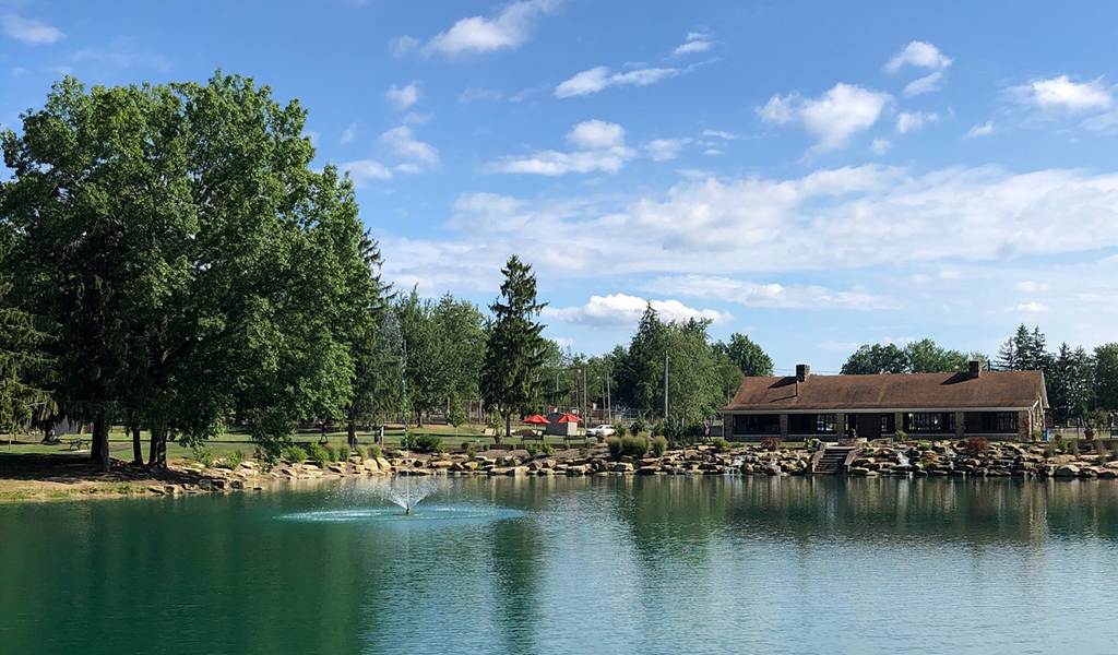 The Mirror Lake area at Harvey S. Firestone park in Columbiana, Ohio, underwent a major improvement project in 2019 which included reconfiguring the outline of the lake, dredging the lake and adding landscaping to the perimeter. (Submitted photo)