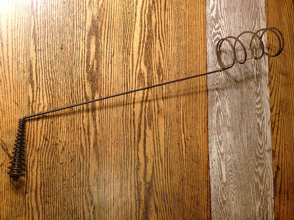 On to Item No. 1068, shared by Ryan Thomas, of Grove City, Ohio. The total length is about 32 inches; the coil (spring) is 7 inches. There are no markings of the manufacturer on it. Ryan says one of the coils on the compression spring end has an indentation on it.