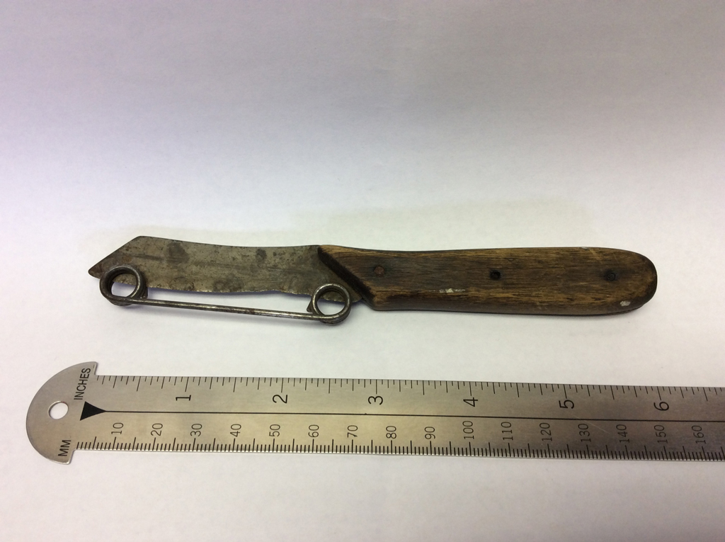 This week’s item comes from William Logsdon, of Salem, Ohio. It’s obviously a knife about 6 inches long, but what was the guide and how was this used?