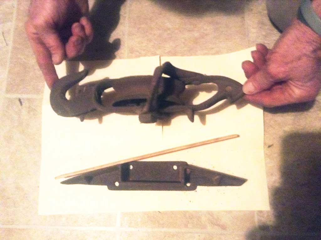 The one is a pulley, but he wants to know if it’s made for a specific purpose. And which hook is up and which is down? Were these used together? Inquiring minds want to know.