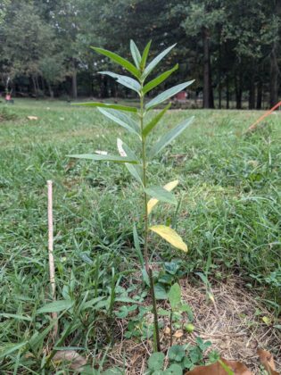 Hastily climbing down off the mower, I saw that she had her hands cupped around a small plant protruding slightly above the blades of grass. “You almost hit it and cut it down,” she scolded me. I was taken aback and thought about explaining the whole point of mowing before wisely reconsidering. As I looked closer, I saw that she had rescued a small swamp milkweed.