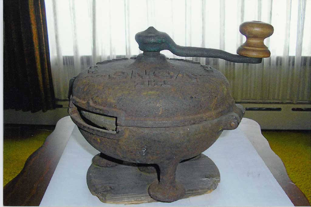 This week, we have a mystery item, Item No. 1133, submitted by Richard Bader of Middletown, New York. He says it has a diameter of 13 inches and is 14 inches high. The handle turns clockwise only. It opens on one end and inside there are two metal disks with felt attached, which are spring-loaded and tight when closed. The item is marked with “O.N.O.A.”