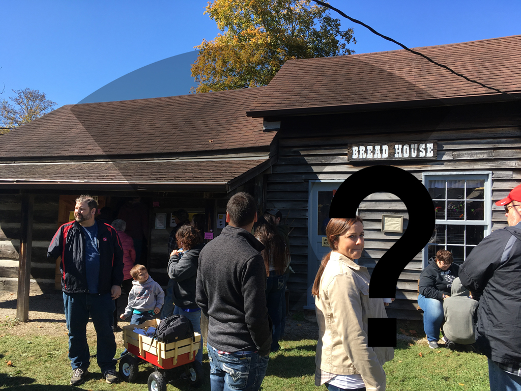 Visitors wait outside the bread house for a slice of freshly baked bread at the Algonquin Mill Fall Festival, in Caroll County, Ohio, Oct. 12. The festival, while beloved and popular, still struggles with internet service and cell reception, making it difficult for vendors to scan credit cards. (Rebecca Miller photo)