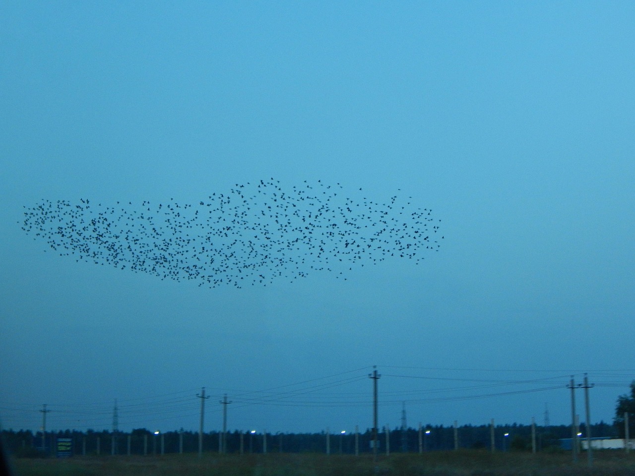 After a few minutes, when the whole group had apparently gathered, they all lifted their wings together, pulling themselves into the sky. This formation is called a “murmuration”— a wild, undulating, but oddly cohesive living sculpture. The flock moved through the sky, twisting and turning, breaking into two separate groups, then rejoining, soaring over my head and then beyond until they reached the horizon line and faded from view.