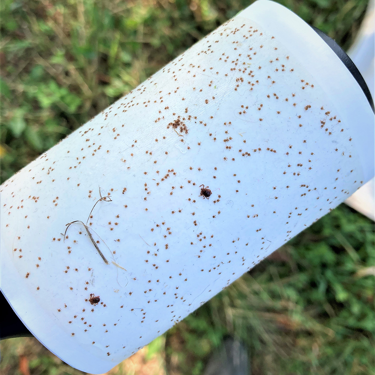 Asian longhorned ticks collected from a contaminated pasture in southeastern Ohio. Pictured are two adults and thousands of nymphal Asian longhorned ticks collected from a pasture tick drag. (Risa Pesapane photo)