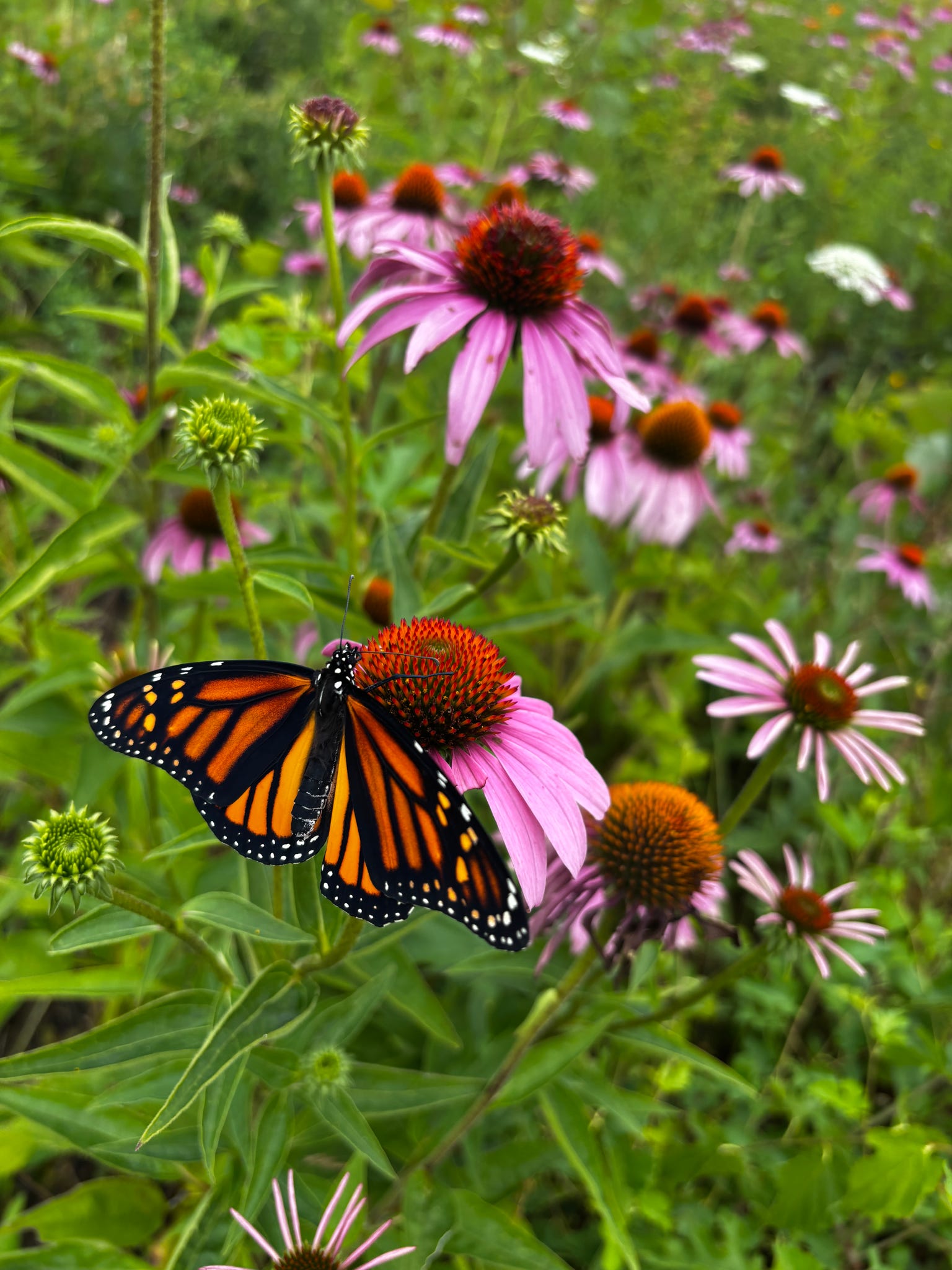 A monarch butterfly lands on a coneflower for a snack. (Cole Plassman photo)