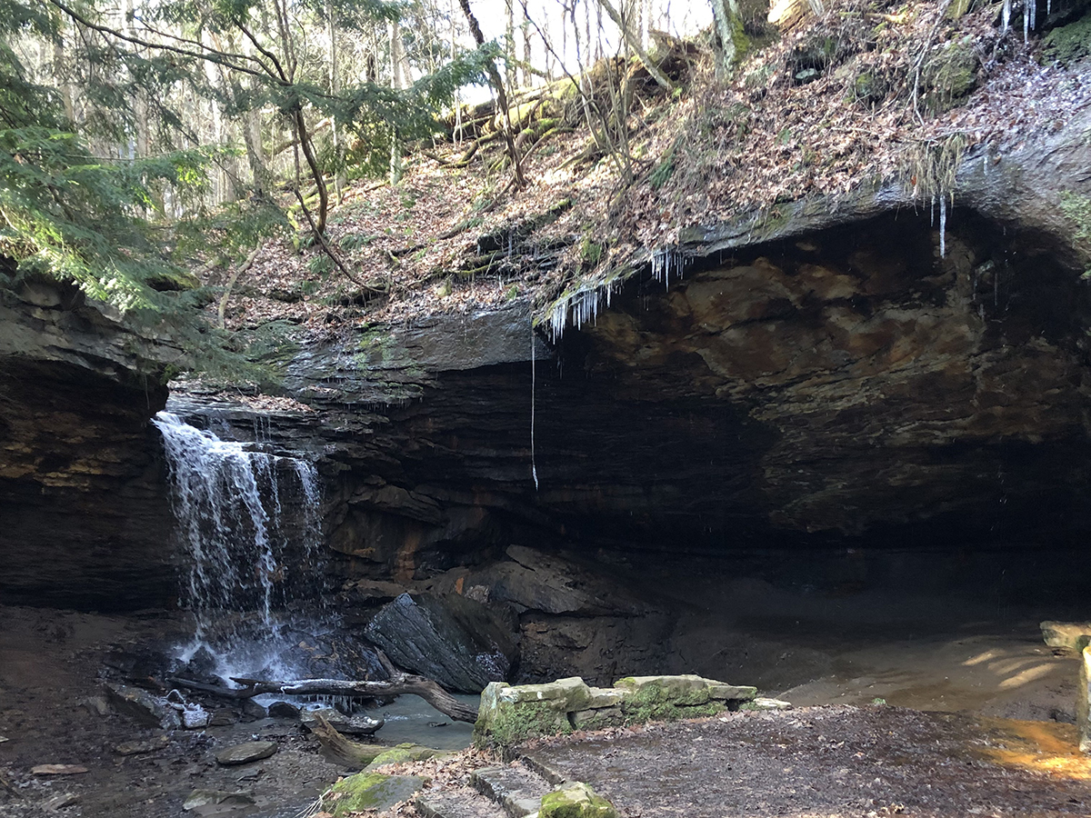 As we hiked up out of the ravine, we noticed the foundation blocks of a previous building. The frills and fancy clothes of the past have faded into history but the allure of natural beauty still exists in Raccoon Creek State Park. The buildings and businesses have crumbled but the mineral-rich water still bursts out from deep within the earth.
