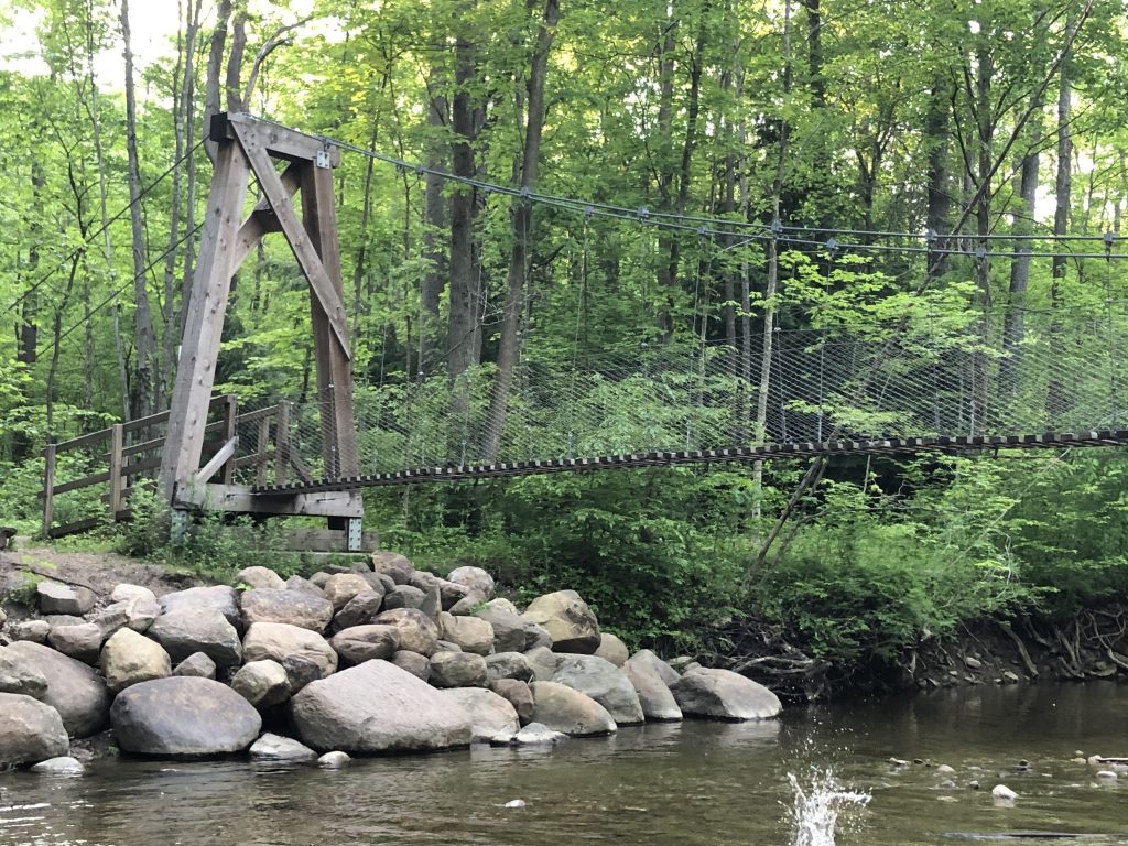 For parents and children, the wooden suspension bridge across a stream was the highlight of the reservation trails. (Julie Geiss photo)
