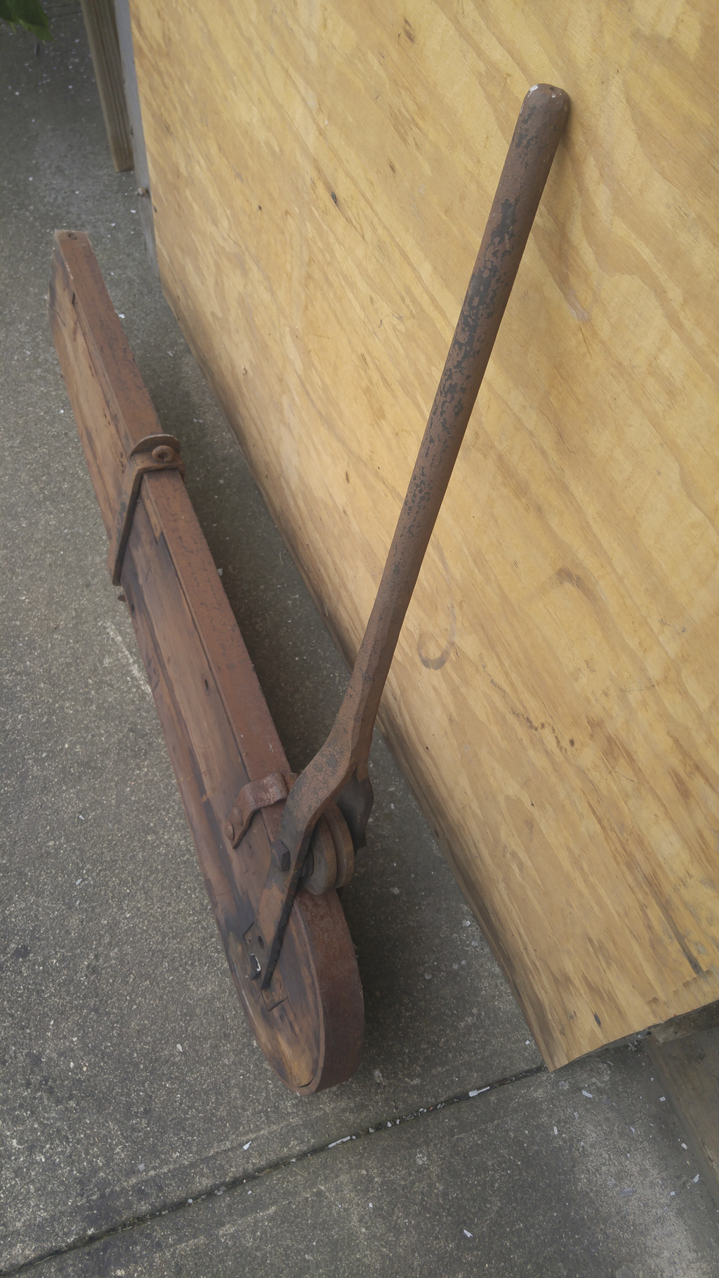 Papai discovered it’s a cultivator for corn and other crops, invented and patented by Menno S. Yoder, of Shipshewana, Indiana, in 1913. The lever lowered or raised the wheels, to vary the contact of the oval “surface soil breaking member” with the soil.