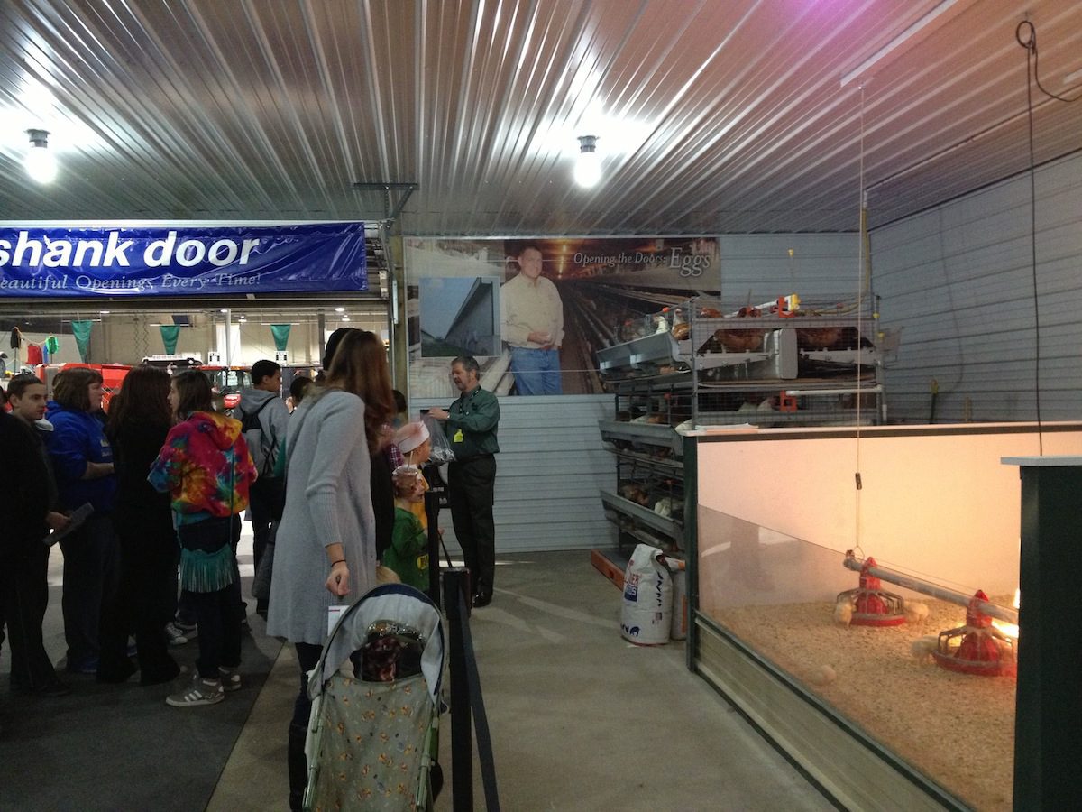 Heberlig is just one of the many volunteers who make the Today’s Agriculture display possible. The display includes an 84-by-42 foot barn that features veal calves in crates, laying hens in caged housing, baby chicks, beef and dairy cattle, a dairy calf in a hutch, turkeys, ducks, baby pigs and hogs.