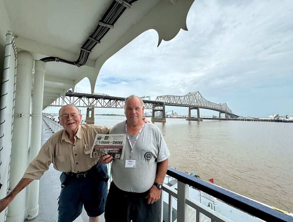 As our ship cruised up river from Baton Rouge, Tom and I proudly displayed a copy of Farm and Dairy and the monthly articles that I write.