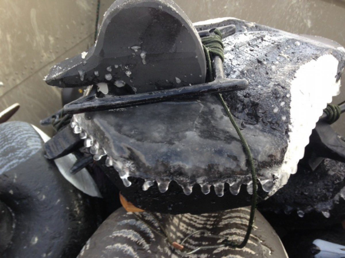 It took one full and busy hour to uncover the ice-covered boat cover snaps, but that was the order of the day as we admitted defeat and bowed to the Polar Vortex.