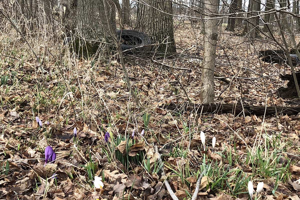 Just behind the little crocus blooms were three discarded tires. (Julie Geiss photo)