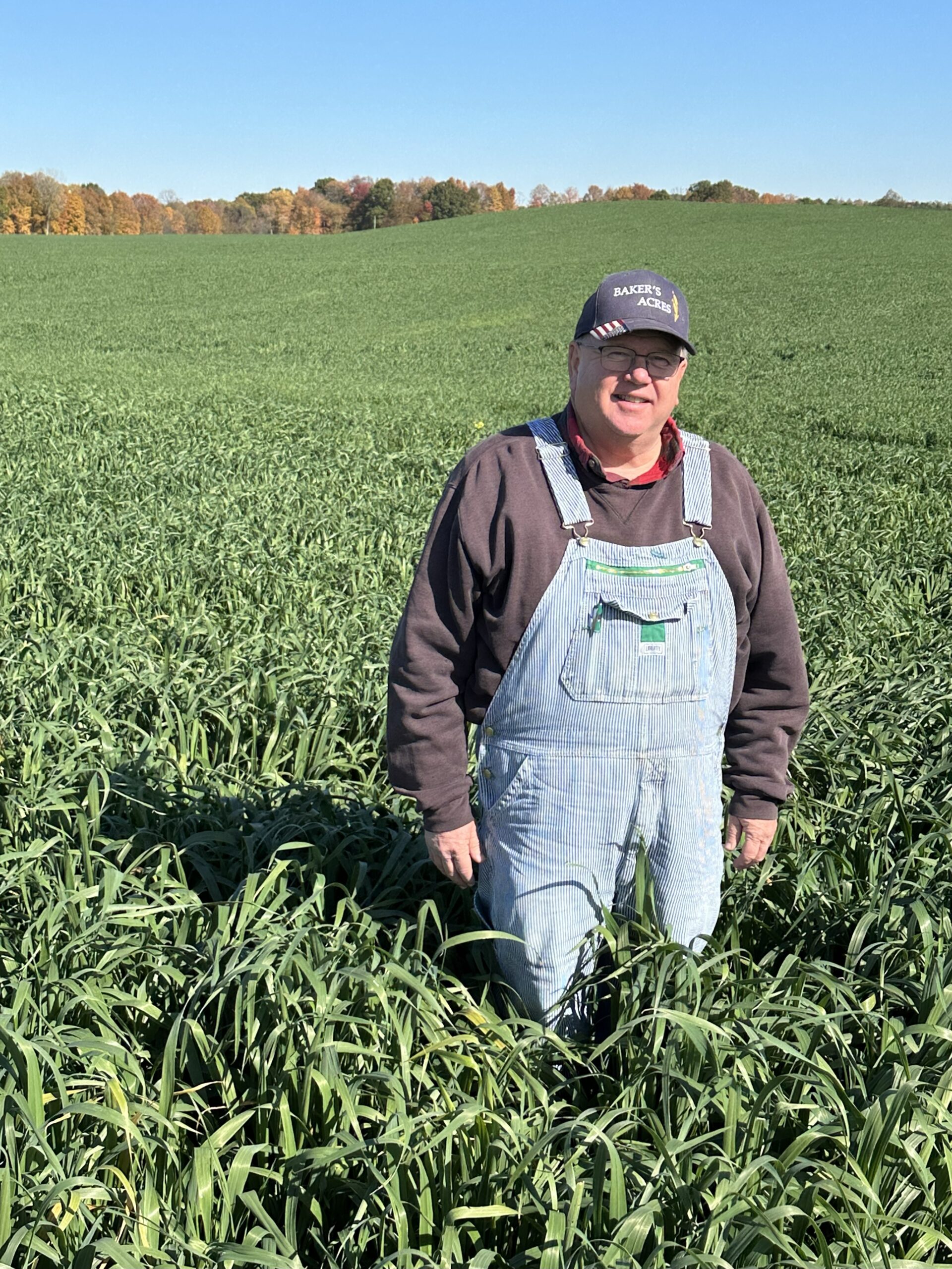 Our conversation took off from there. In short order, we were standing in one of his fields a few miles down the road, watching one of his guys planting green into a cover crop of cereal rye as high as my head. That was just the beginning of the lesson. The more we talked, the more I realized that guy was absolutely devoted to the very sort of thing that we beat our heads over trying to convince others of: no-till, minimum till, cover crops, planting green—the whole soil health ball of wax, it seemed. Months later, I was thrilled to learn that our Board of Supervisors had chosen Baker’s Acres for the 2025 Conservation Farm Award.