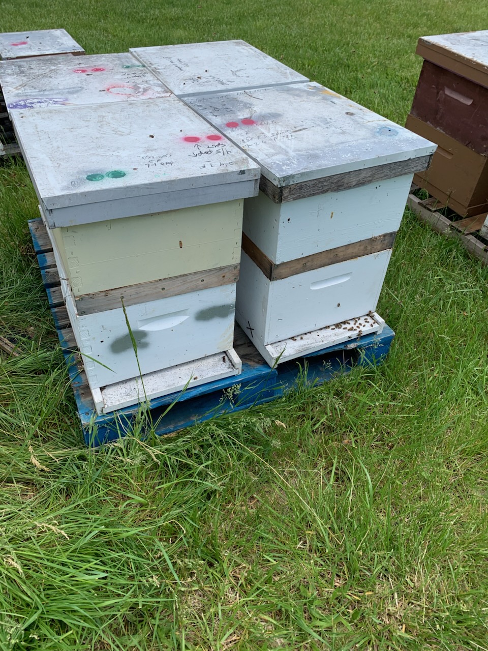 The walkaway split is exactly as it sounds and is probably the easiest method of splitting bees. Remove your queen with three to four frames of brood with plenty of bees attached to the frames and install it into a new box. Find frames with a lot of capped brood because these frames have the most new bees ready to emerge and will support the new hive to grow faster. Frames of honey and pollen are also important because most of the foragers will return to the old hive if you locate the new split in the same bee yard.