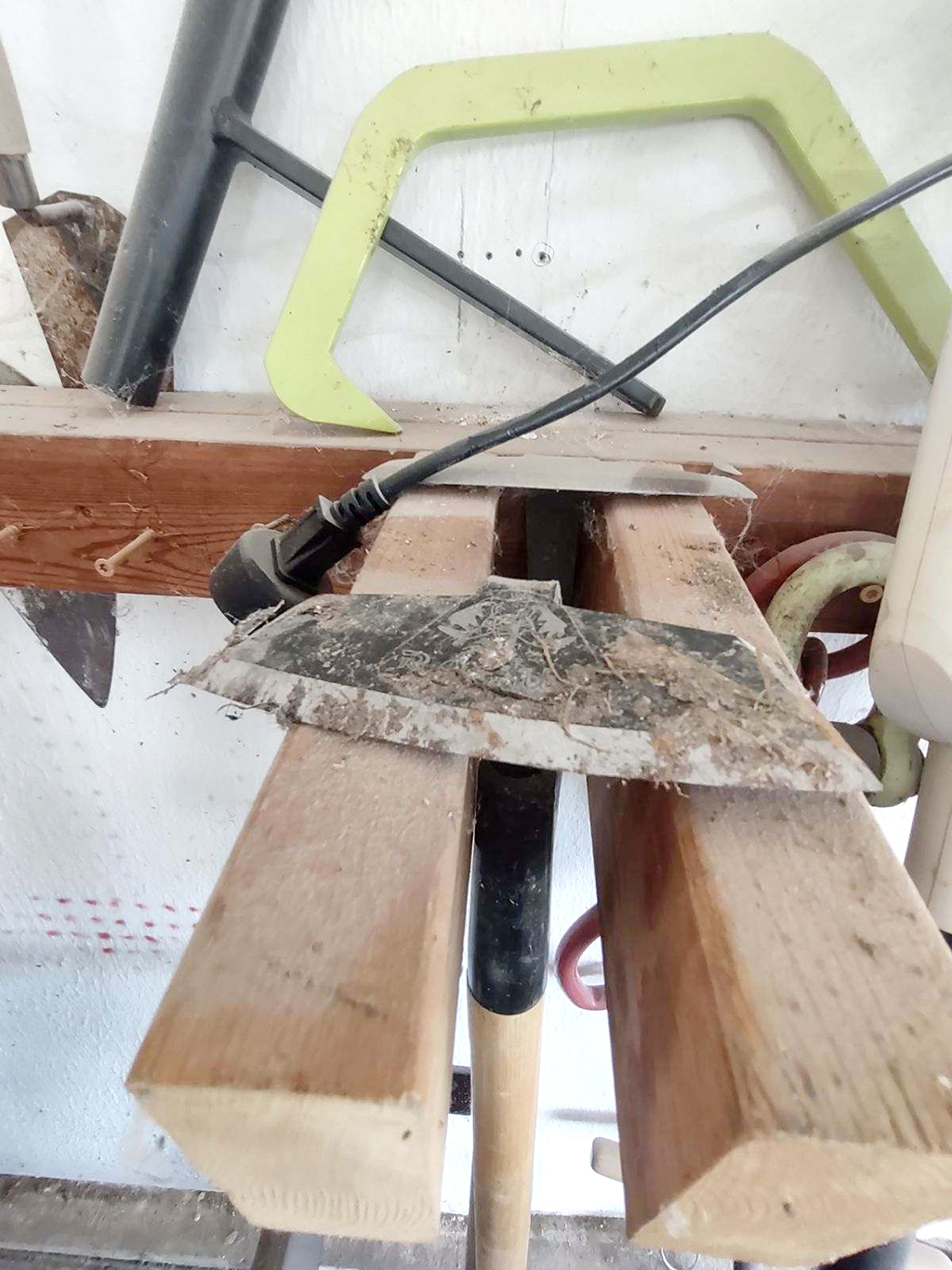 They’re comfortable, light and can hold an edge — which means, before we go outside to weed, I go over the edge with a file to keep it sharp.