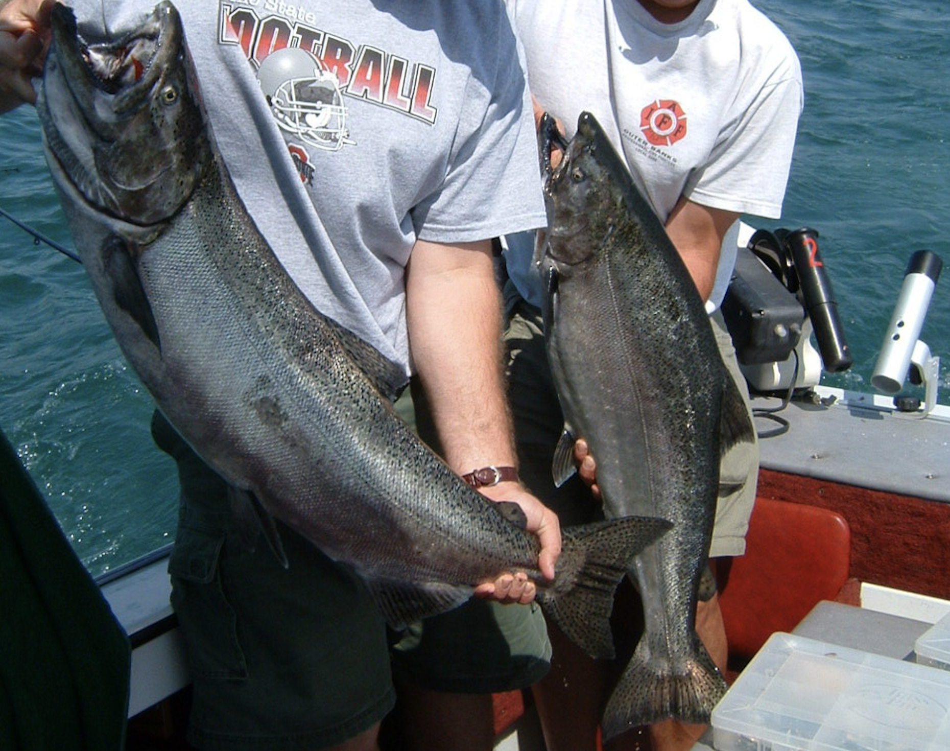 Great Lakes salmon do not reproduce naturally. That’s why state hatchery fish and pen raised fish are stocked and can be fished for. Lake Ontario provides ideal conditions and plentiful forage which means salmon and trout grown fast and strong.