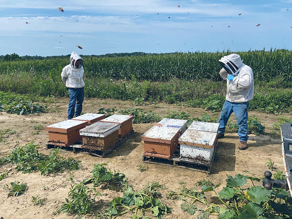 Last week in northeast Ohio, we finally got morning lows in the mid-50s range — perfect for this time of the year to move bees in the morning. Pumpkins are starting to bloom, and we grabbed 20 hives at 6 a.m., before they started to fly, and loaded them in a pickup for a short 5-mile trip to a farmer’s field. My buddy, Doug White, helped close off the entrances, and we loaded them in less than 15 minutes in the back of the truck. The night earlier, my lil dove, Patty Boser, smoked and helped me load about 20 into a dump trailer that went to a different field. The nighttime humidity made us sweat, and the bees were in a foul mood and they let us know it.