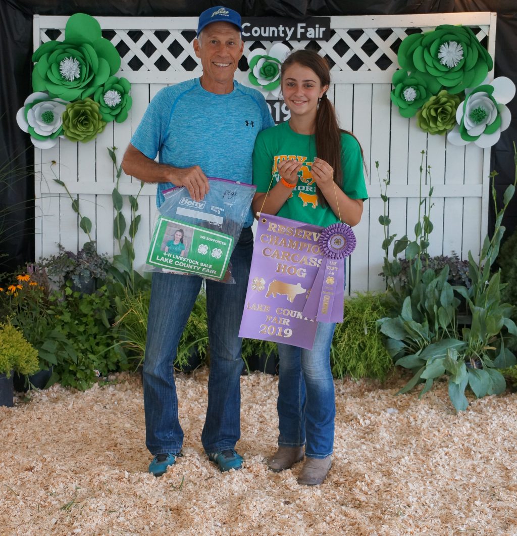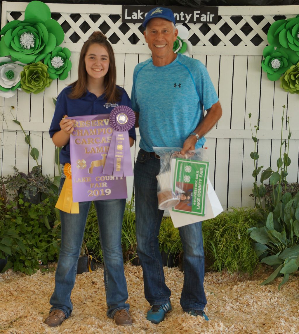 Anya Demshar exhibited the grand champion market beef steer at the 2019 Lake County Fair. It weighed 1,392 pounds and sold for $3 per pound. Demshar also exhibited the grand champion lamb carcass.