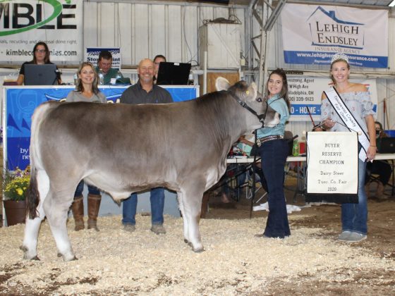 The grand champion steer, exhibited by Reid Black, sold for $5.50 per pound to Mushrush Utility Contracting Inc.