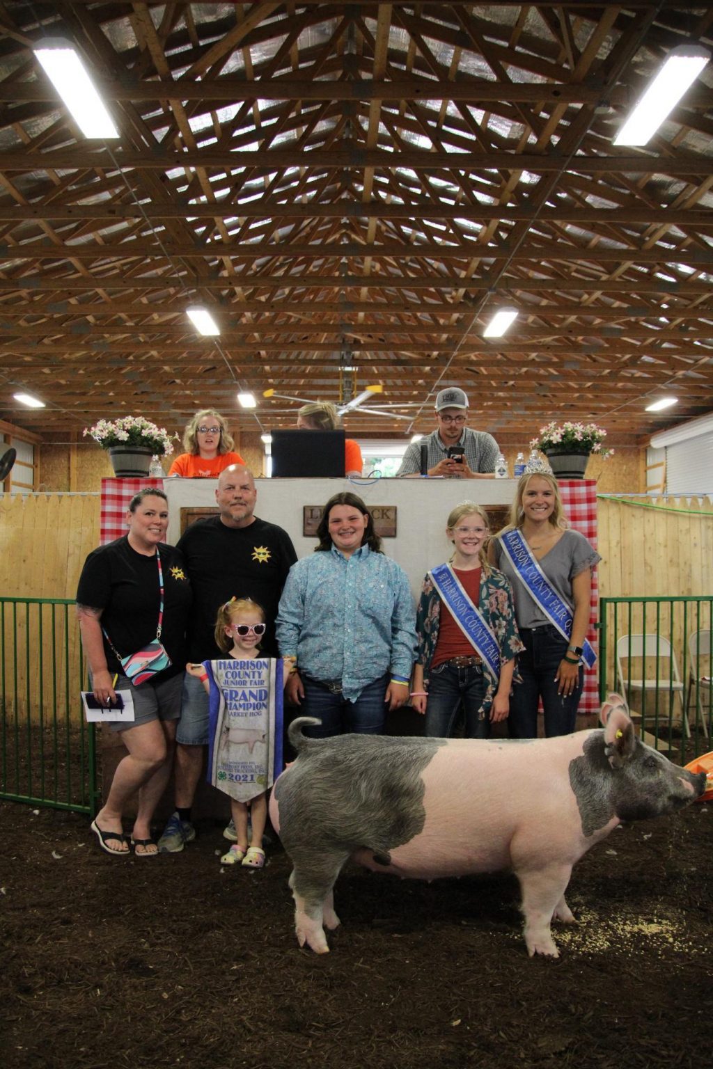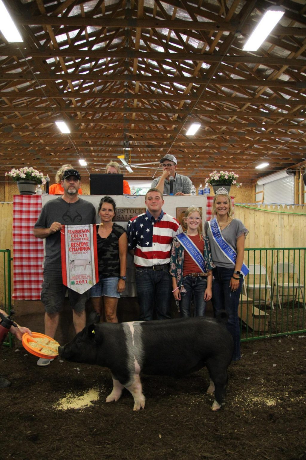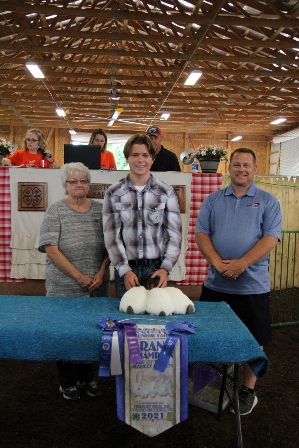 Jace Madzia’s 1,374-pound grand champion steer sold to Dino Piergallini & Sons, Border Patrol and Wilgus & Company for $10 per pound.