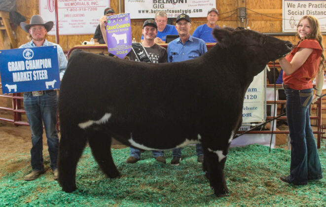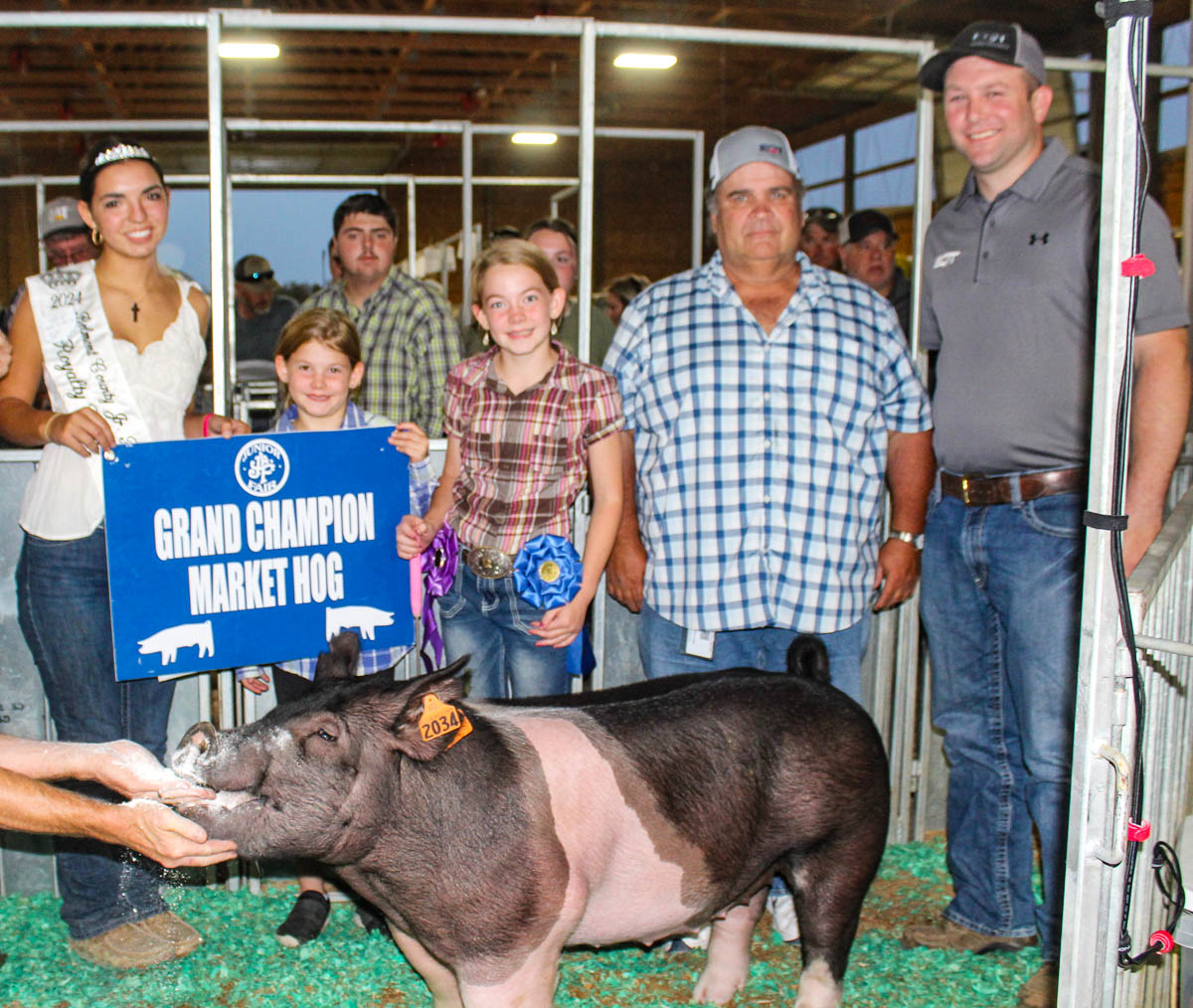 GRAND CHAMPION: Josey Hunter | Bid: $4/lb | Weight: 554 lbs | Buyer: Barnesville Livestock and Heritage Co-Operative; RESERVE CHAMPION: Paige Kemp | Bid: $4/lb | Weight: 448 lbs | Buyer: Dwight Shugert and Shugert Farms